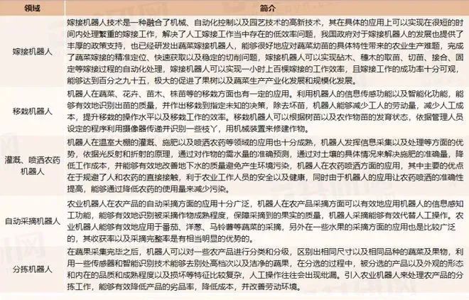 农用机器人是一种以农业产品为具体操作对象的,拥有具体的感知以及活动功能,能够重复编程和应用的自动化或者半自动化的设备,能够降低人工操作的强度,解决劳动力紧缺的问题,能够提升劳动效率和工作质量。
